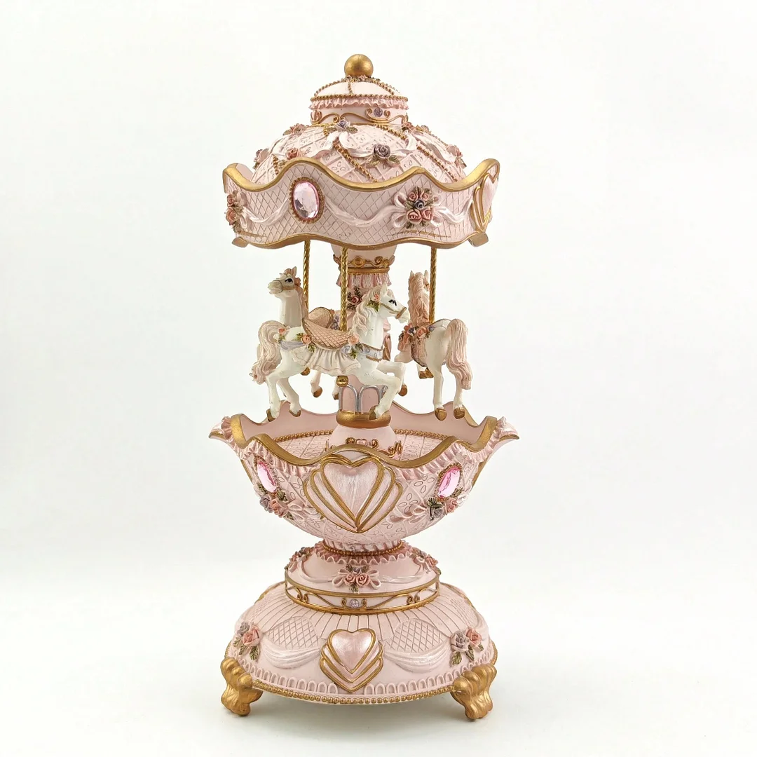 Music System: Features a high-quality built-in mechanism with default tracks mostly classic melodies (such as "Castle in the Sky" and "Canon," subject to change). The sound quality is clear and pleasant. The carousel rotates synchronously during playback, creating an immersive and romantic atmosphere.