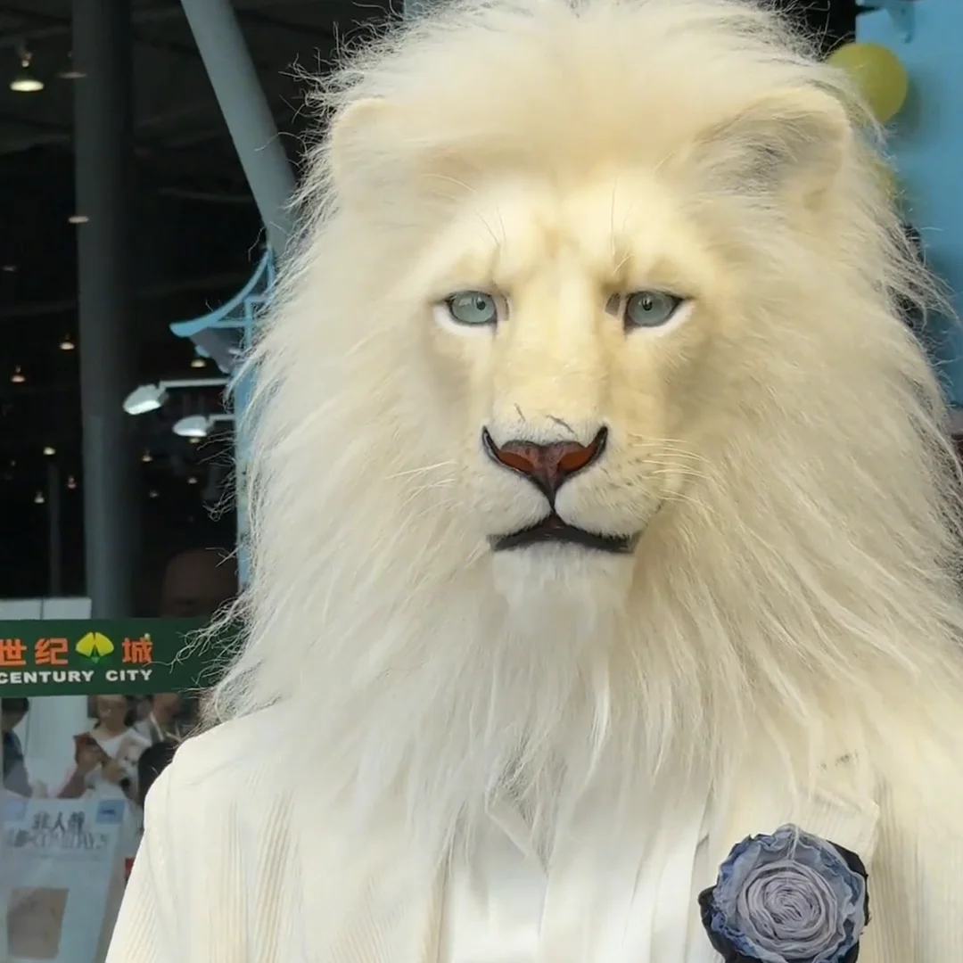 Design: Based on the rare white lion, this headpiece accurately replicates its features, featuring a lush, naturally flowing mane, deep, and piercing blue eyes, and realistic facial texture. From the side or front, it looks like a real white lion "resurrected," instantly becoming a crowd favorite.