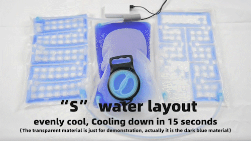 This vest has a 3 litre ice bladder built-in for easy to reload for continuous cooling over extended periods. The products use a combination of ice water and pumps to push cold water through special flat water compartments on the vest.